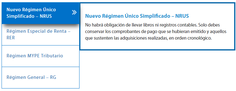 Asimismo, se pagan dos impuestos de manera mensual: el IR y el IGV; y se realiza una declaración anual. El pago a cuenta mensual se realiza al que resulta mayor de los ingresos netos del mes o el 1,5 %. En tanto, el pago anual es la tasa de 29,5 % sobre la renta anual.