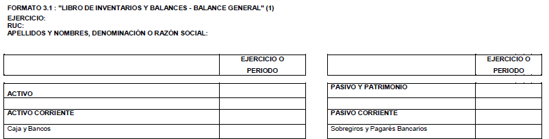 a) Formato 3.1: «Libro de Inventarios y Balances – Balance General».
