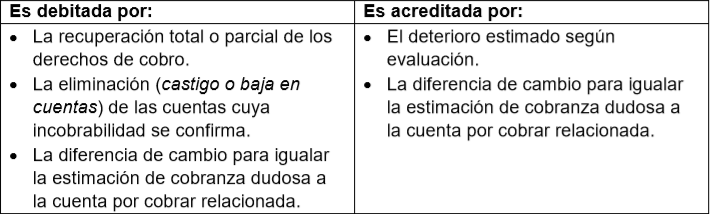 Agrupa las subcuentas que acumulan las estimaciones por deterioro de las cuentas por cobrar.
