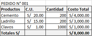 En el mes de junio 2019, la empresa Distribuidora AB S.A. efectuó un pedido a su proveedor PORCELANATO S.A. de los bienes que se muestran a continuación con sus respectivas características:
