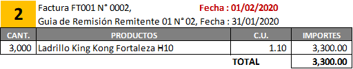 FACTURAS: La empresa NUEVOS RETOS PERU SAC recibe la FT001 N° 0001 por S/ 118,700.00 con fecha de emisión del 31/01/2020 y la Factura FT001 N° 0002 por S/ 3,300.00 con fecha de emisión del el 01/02/2020.