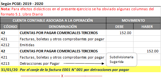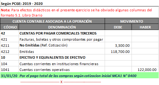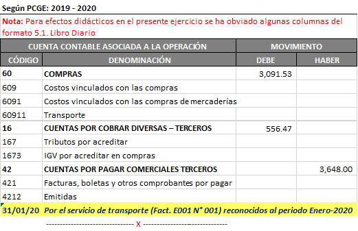 Para el periodo de enero 2020 se realizaría los siguientes asientos contables: