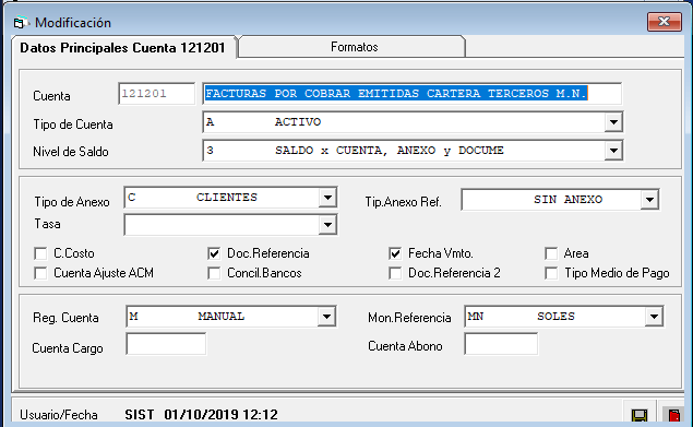 Habilitando con check este campo sirve para indicar si la cuenta requiere que se ingrese como dato obligatorio la fecha de vencimiento al registrar el movimiento contable.