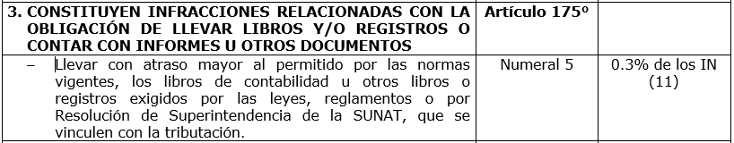 Es preciso indicar que antes de la publicación del Decreto Legislativo N° 1420 del 2018, todo atraso de libros y registros contables se contemplaba en el numeral 5, actualmente su aplicación se interpreta que esta relacionada a los libros y registros manuales o computarizados, debido que el numeral 10 es muy especifico al indicar que se aplica a los libros y registros electrónicos.
