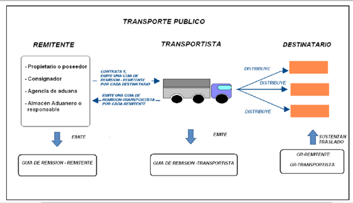 Una guía de Remisión – Remitente.- Por los sujetos propietarios o poseedores de los bienes; o aquellos en general a quienes corresponde la emisión de la guía de remisión – Remitente tal y como se obliga para el transporte privado, entendiéndose que se emitirá una por destinatario.