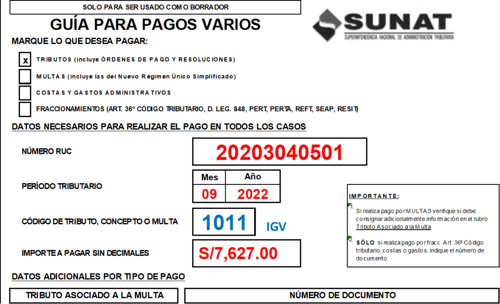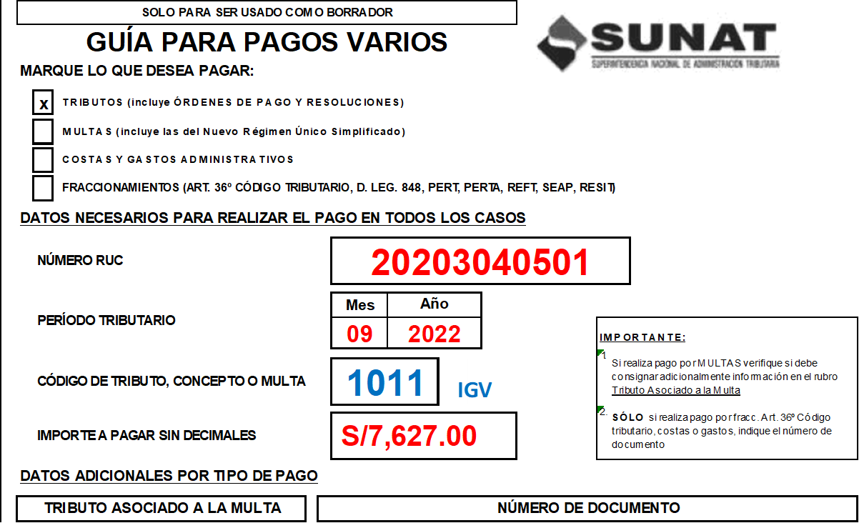 - S/ 7,627.00 de IGV según detalle de Guías de pagos varios