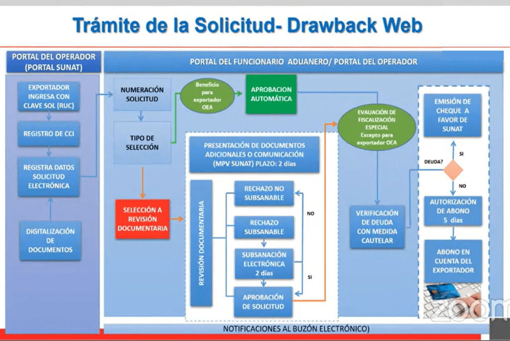 Si en la revisión revisión documentaria se evidencian omisiones, errores o incumplimiento de los requisitos y condiciones, la solicitud de Drawback puede ser rechazada como subsanable o no subsanable, situación que es notificada a través del Buzón SOL del beneficiario.