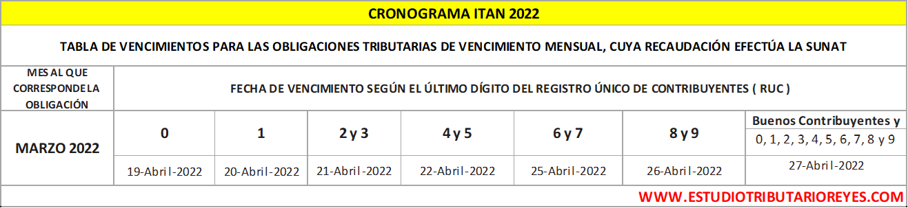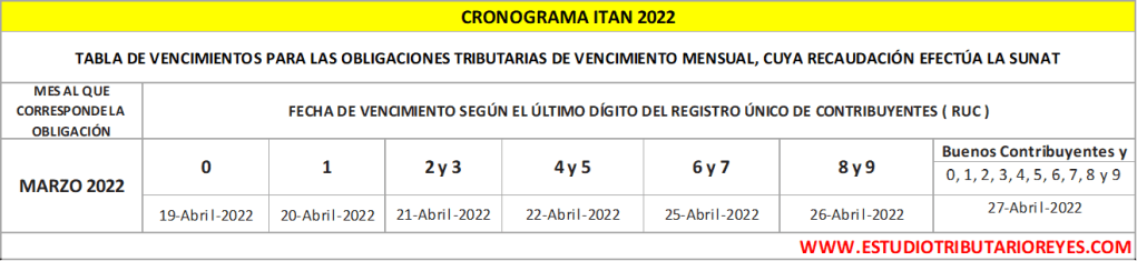 รLTIMO DรGITO DEL RUC DEL CONTRIBUYENTE (PERIODO MARZO 2022)
