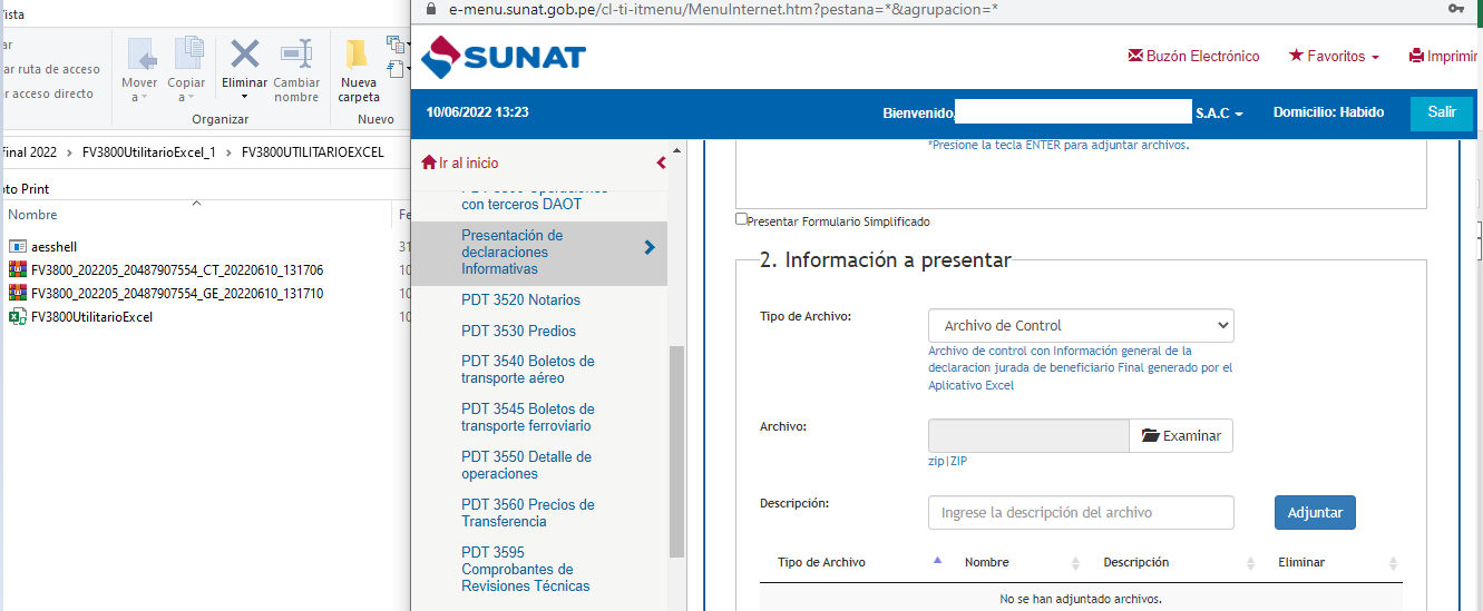 - De conformidad con lo dispuesto en el párrafo 6.4 del artículo 6 de la Resolución de Superintendencia N° 185-2019/SUNAT, en los casos que el contribuyente cuente con más de un (1) beneficiario final, o solo cuente con un (1) beneficiario final y este no sea residente en el Perú, deberá adjuntar al Formulario Virtual N° 3800, los archivos planos que se generen como consecuencia del proceso de validación del archivo aplicativo Excel, cuyo acceso se puede realizar a través de la siguiente ruta: