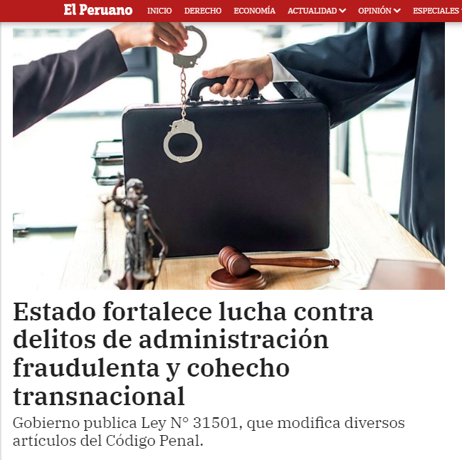 5. Se trate del delito de cohecho activo transnacional perpetrado por peruano o representante de una persona jurídica domiciliada en el Perú.