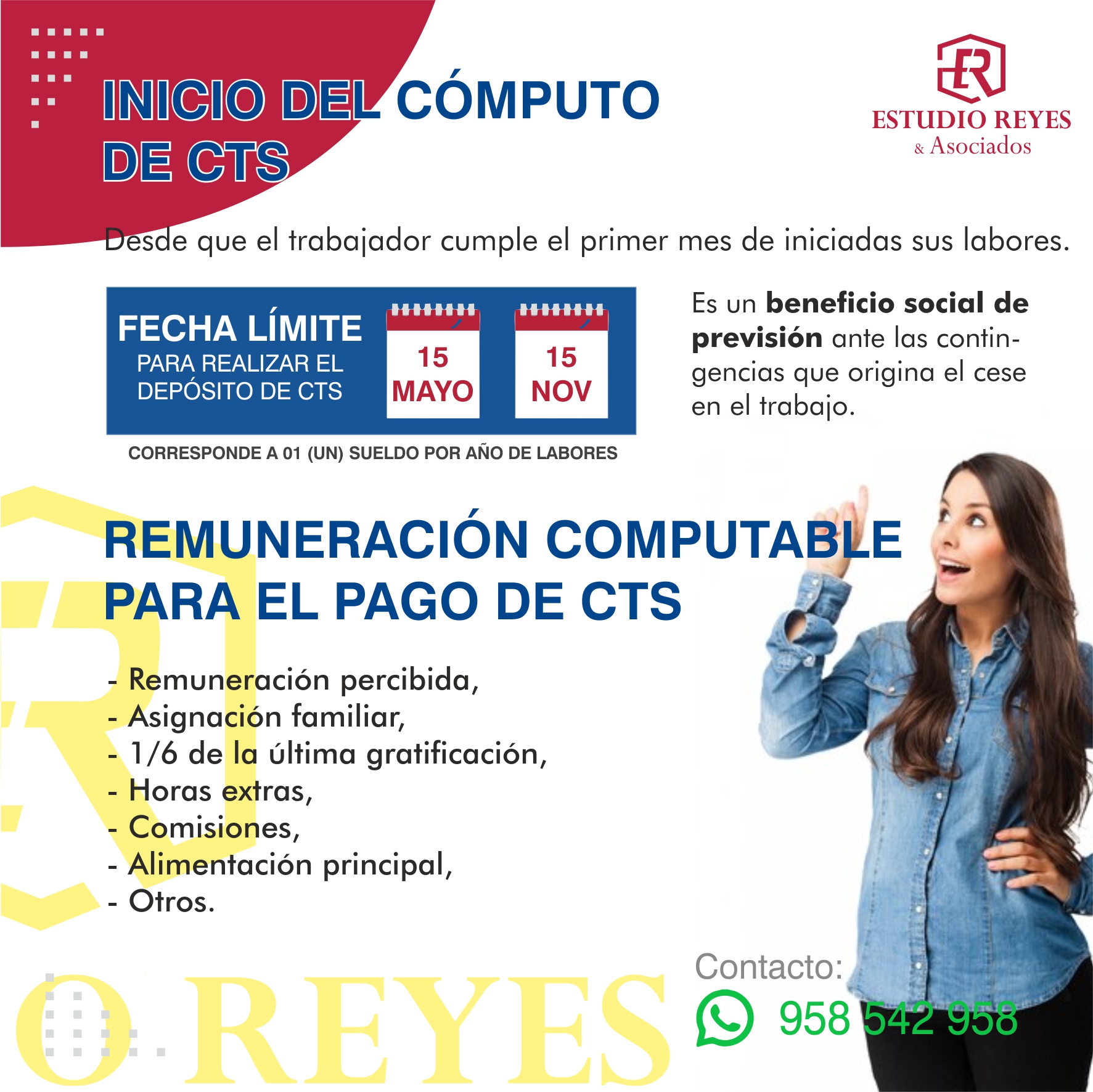 Para calcular la Compensación por el tiempo de servicios – CTS debes considerar la Remuneración computable (RC) sueldo básico que recibe el trabajador. Además, tener presente para el cálculo lo siguiente: