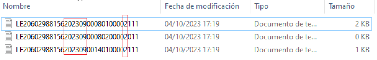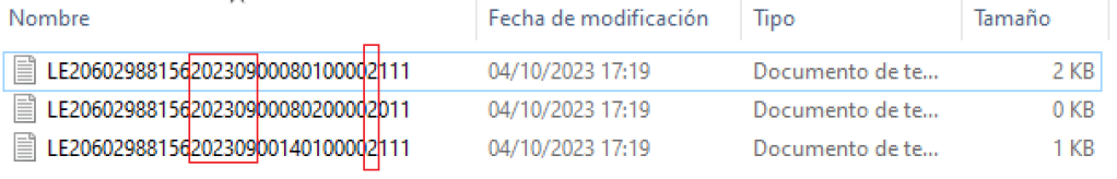 Para ello el nombre del archivo TXT esta compuesto por la siguiente estructura, SOLO DEBES MODIFICAR LA POSICION 30.