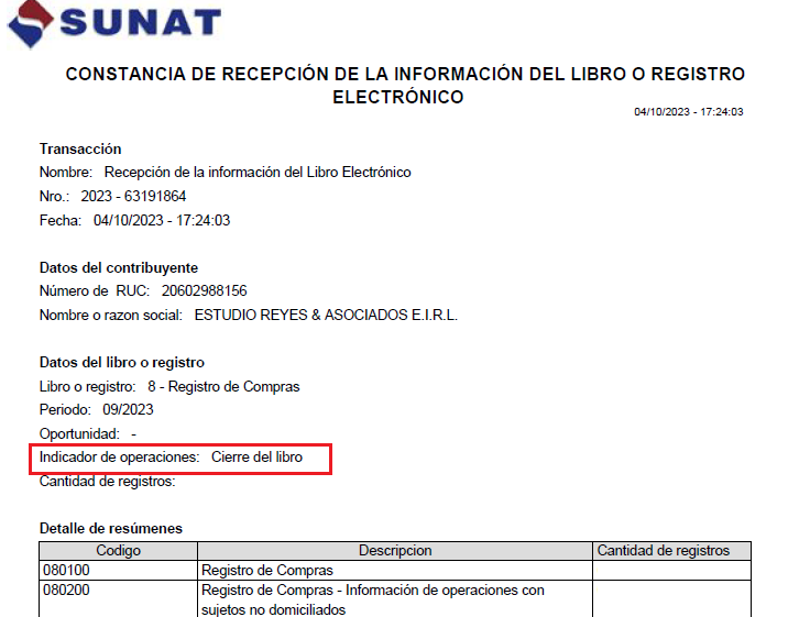| 0 | Cierre de operaciones – baja de inscripción en el RUC | |