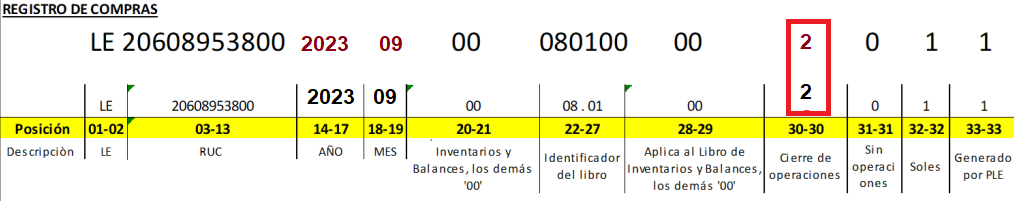 | 33-33 | G | Indicador de libro electrónico generado por el PLE |