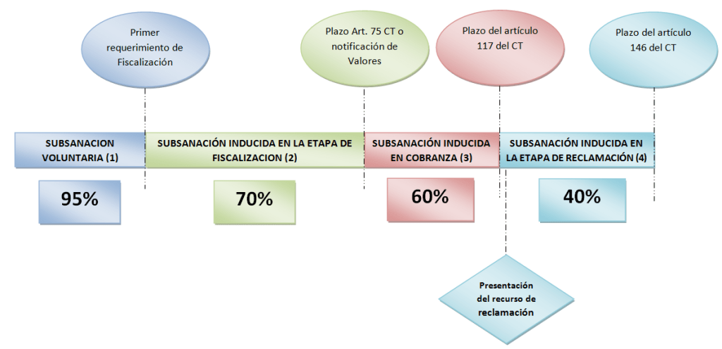 | (1) Subsanación Voluntaria: | (2) Subsanación Inducida en Etapa de Fiscalización: | (3) Subsanación inducida en etapa de cobranza: | (4) Subsanación inducida en etapa de reclamación: |