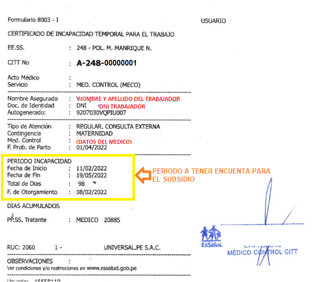 - Tener el CITT de ESSALUD: Certificado de Incapacidad temporal para el Trabajo / Contingencia: Maternidad.