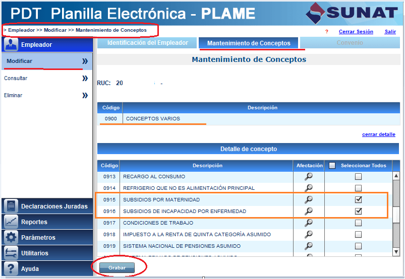 01. HABILITAR EL CONCEPTO SUBSIDIO POR MATERNIDAD EN EL PLAME