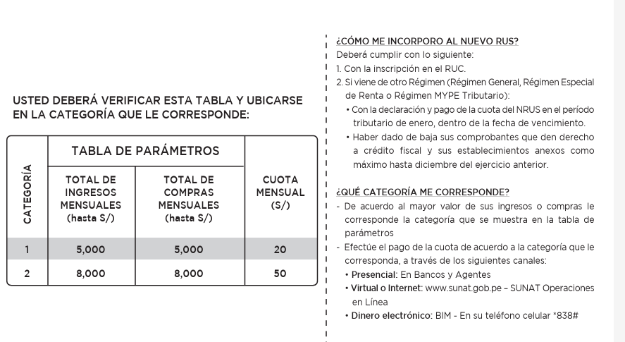 Tipo de tributo: RUS – Nuevo Régimen Único Simplificado