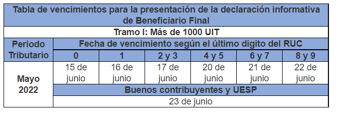 Beneficiario Final Se define al beneficiario final (*) como: La persona natural que efectiva y finalmente posee o controla personas jurídicas o entes jurídicos, conforme a lo previsto en el artículo 4 de la norma; y/o,La persona natural que finalmente posee o controla un cliente o en cuyo nombre se realiza una transacción. La expresión “finalmente posee o controla” … Sigue leyendo SUNAT | ¿Cómo declarar el Beneficiario Final? Vencimiento 2022 y 2023 (Formulario Virtual N.° 3800)