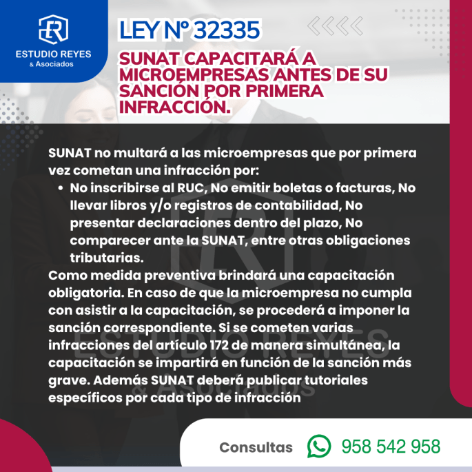 Sunat capacitará a microempresas antes de su sanción por primera infracción. Ley N° 32335