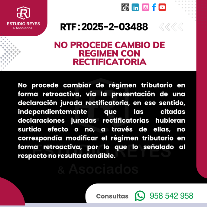 RTF : 2025_2_03488 16/04/2025 Que, en consecuencia, los pagos realizados mediante los Formularios Virtuales 1662, fueron válidamente imputados al Régimen Especial de febrero, marzo, abril y agosto de 2019, no encontrándose acreditado en autos, la existencia de pagos con error, por lo que corresponde confirmar las resoluciones apeladas, en los términos expuestos en la presente … Sigue leyendo El cambio del régimen tributario del IR mediante declaración rectificatoria es improcedente