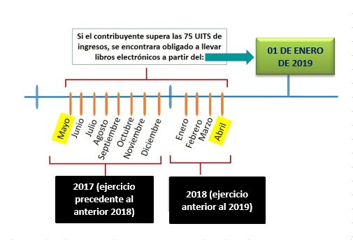 Se encuentran obligados a llevar libros electrónicos los contribuyentes que hayan obtenido ingresos iguales o mayores a 75 UIT, en el periodo comprendido entre el mes de mayo del año precedente al anterior y abril del año anterior.