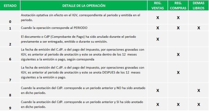 SUNAT – PLE: Estados para corregir libros y registros electrónicos.