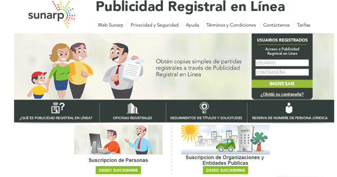Suscribete a Publicidad Registral en Linea – SUNARP