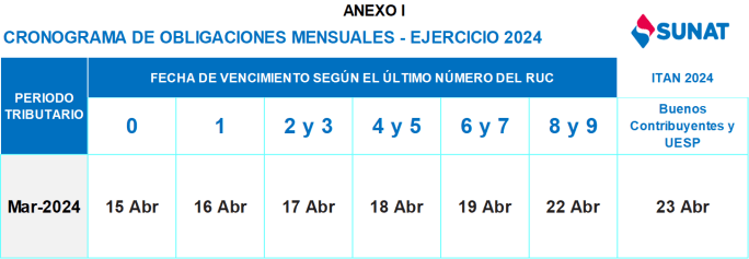 ITAN 2024 | Cronograma de Impuesto Temporal a los Activos Netos โ SUNAT