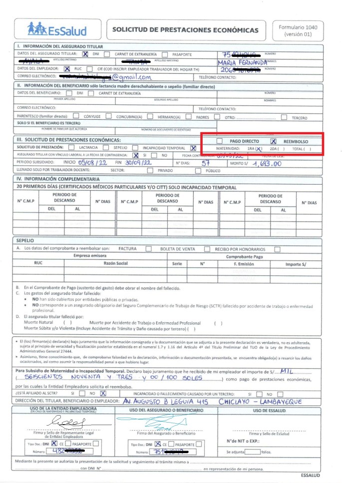 Llenado de Formulario 1040 – Essalud para trรกmite de subsidio por maternidad – 2024