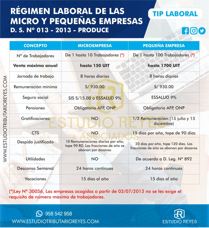 régimen laboral de la micro y pequeña empresa Es un régimen laboral creado para los emprendedores, que por el tipo de negocio o contexto socio-empresarial, no generan los mismos ingresos que una empresa de régimen común. Para acogerse a dicho régimen, se debe cumplir los siguientes requisitos: En el caso de la micro empresa, deberá … Sigue leyendo Beneficios de los trabajadores en el régimen laboral de la micro y pequeña empresa 【Perú】