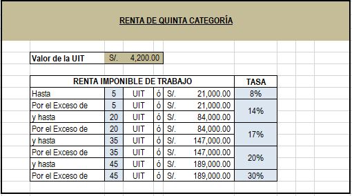 Cálculo de renta de quinta [Plantilla Excel] SUNAT